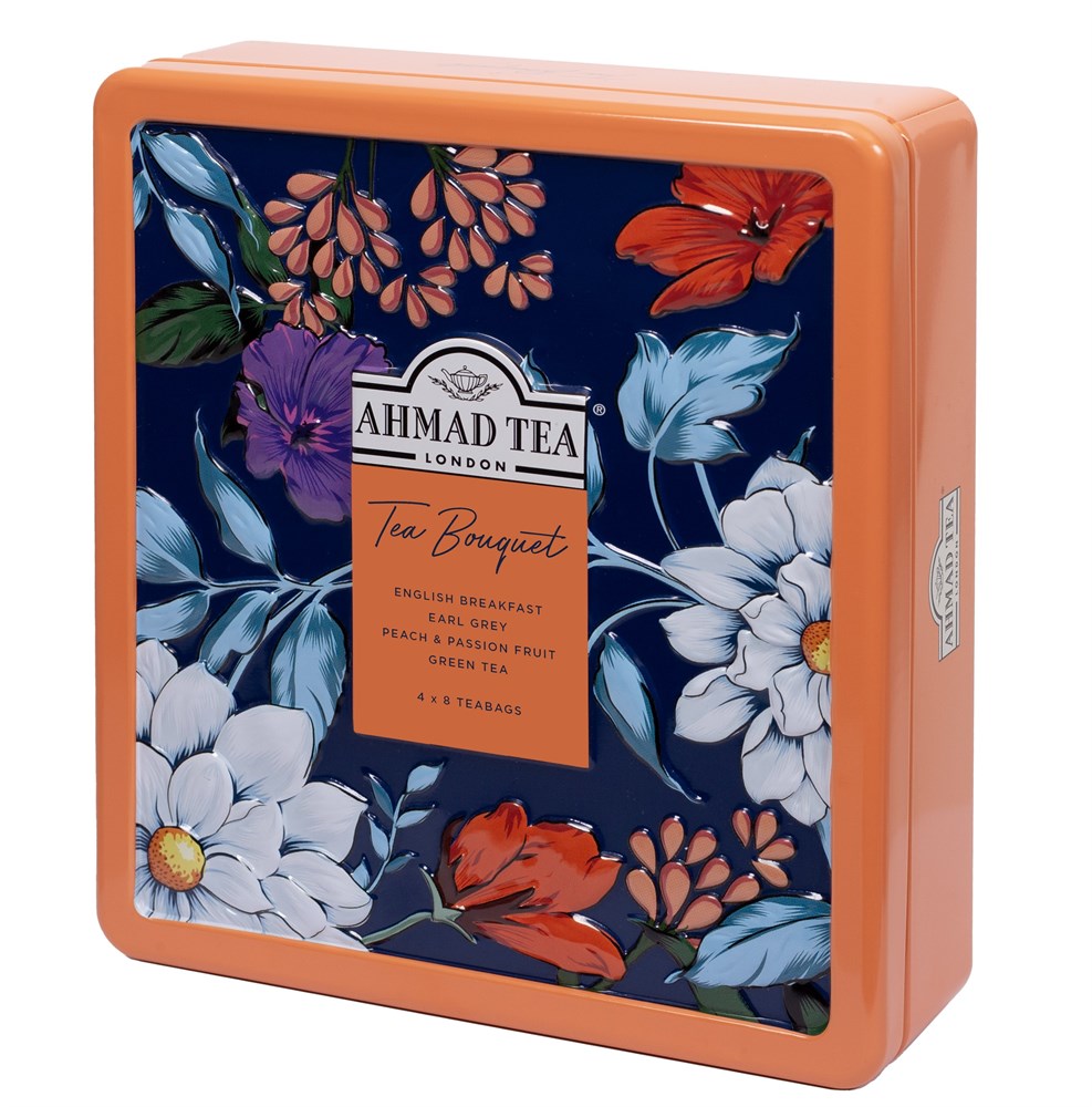 Чай "Ahmad Tea", набор Чайный букет, пакетики в индивидуальных конвертах, металлическая коробка, 4 вкуса, 32х2г